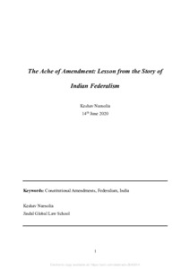 Narnolia, Keshav (2020) The Ache of amendment – lesson from the story of Indian federalism. [Preprint]
