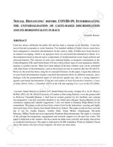 Kumar, Surendra (2020) ‘Social distancing’ before COVID-19: Interrogating the universalization of caste-based discrimination and its horizontality in race. [Preprint]