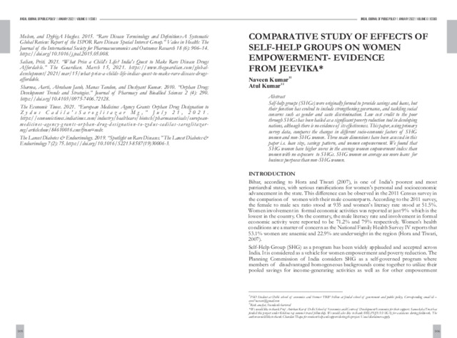 Kumar, Naveen and Kumar, Atul (2022) Comparative study of effects of Self Help Groups on women empowerment-Evidence of JEEViKA. Jindal Journal of Public Policy, 6 (1). pp. 106-125. ISSN 2277-8743
