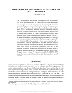 Ganguly, Abhishek (2020) India's economic development: maintaining food quality standards. [Preprint]