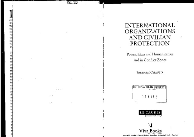 Chaulia, Sreeram (2011) International organizations and civilian protection: Power, ideas and humanitarian aid in conflict zones. Viva Books, New Delhi, pp. 1-288. ISBN 978-1848856400