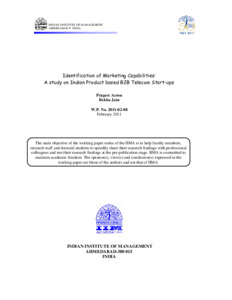Aeron, Prageet and Jain, Rekha (2011) Identification of marketing capabilities: a study on Indian product based B2B telecom start-ups. [Preprint]
