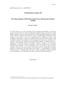 Sarkar, Swagato (2011) The Unique Identity (UID) project and the new 'Bureaucratic Moment' in India. [Working papers (or Preprints)]