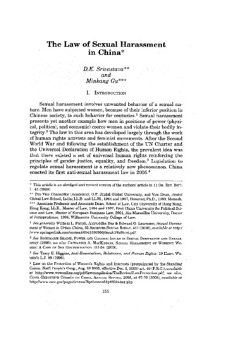 Sexual harassment involves unwanted behaviour of a sexual nature. Men have subjected women, because of their inferior position in Chinese society, to such behaviour for centuries. Sexual harassment presents yet another example how men in positions of power (physical, political, and economic) coerce women and violate their bodily integrity. The law in this area has developed largely through the work of human rights activists and feminist movements. After the Second World War and following the establishment of the UN Charter an the Universal Declaration of Human Rights, the prevent idea was that there existed a set of justice, equality, and freedom. Legislation to regulate sexual harassment is a relatively new phenomenon. China enacted its first anti-sexual harassment law in 2005. Passing legislation, however, is not enough unless the legislation provides a mechanism to give relief in sexual harassment cases.