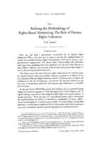 This Note surveys the role of human rights indicators in the ongoing quest for implementation and accountability. Section I summarizes a history of the development of Human Rights indicators; Section II assesses some strengths and weaknesses in the use of indicators; and Section III examines whether or not the entry of quantitative indicators into human rights discourse is a desirable phenomenon.