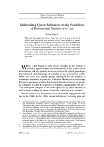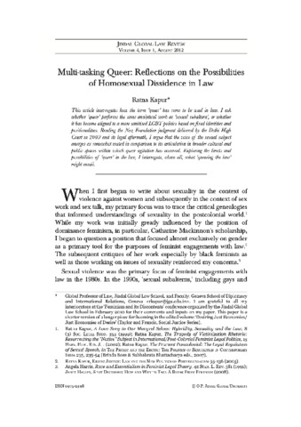 Kapur, Ratna (2012) Multitasking queer reflections on the possibilities of homosexual dissidence in law. Jindal Global Law Review, 4 (1). pp. 36-59. ISSN 0975-2498