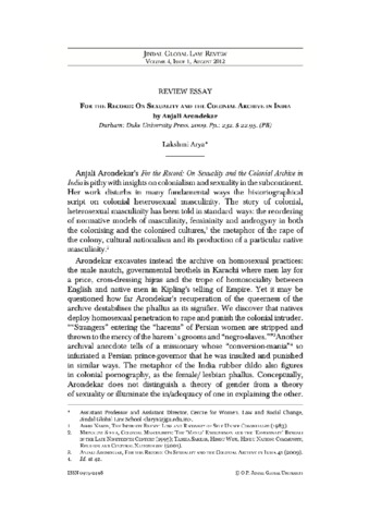 Arya, Lakshmi (2012) ‘For the record: On sexuality and the colonial archive in India’ by Anjali Arondekar. [Book Review]