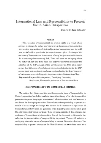 | Uncontrolled Keywords: | Responsibility to protect | Developing Countries | South Asia | Universal Application of International Law |