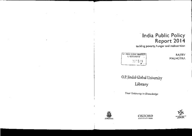 Malhotra, Rajeev (2014) India public policy report 2014: tackling poverty, hunger and malnutrition. Oxford University Press, New Delhi. ISBN 9780199452040