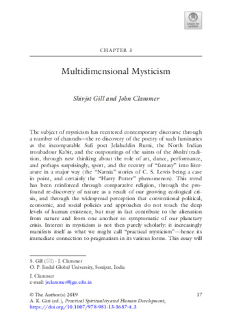 Gill, Shivjot and Clammer, John (2019) Multidimensional mysticism. In: Practical spirituality and human development: Creative experiments for alternative futures. Palgrave Macmillan, Singapore, pp. 17-37. ISBN 978-981-13-3687-4