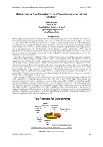 Rajpal, Rohit and Koul, Saroj (2014) Outsourcing: A non-competent area of organization or an internal strategy? In: International Conference on Management and Information Systems, August 4-6, 2014.