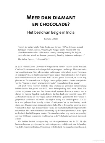 Meer dan diamant en chocolade? Het beeld van België in India Kalyani Unkule ‘Hergé, the author of the Tintin books, was born in 1907 in Belgium, a small European country. Almost 30 years after Hergé’s death, Tintin is still one of the best ambassadors of his native country showing some of the Belgian particularities, which are humour, generosity, humility, tolerance and respect.’ The Indian Express, 13 februari 2012 In 2006 schreef Karine Lisbonne-de Vergeron een rapport voor de Britse denktank Chatham House over de hedendaagse Indiase percepties van Europa. Haar conclusies waren ontluisterend. Niet alleen maken Indiërs geen onderscheid tussen Europa en de Europese Unie, en hechten ze meer waarde aan de bilaterale relaties met de grote individuele lidstaten dan aan die met de EU in haar geheel. Maar ook, en vooral nog, plaatsen ze Europa onderaan het lijstje van mogelijke partners in een multipolaire wereld. ‘Europe is simply unattractive to India’, zo concludeerde de auteur.1 Dat geldt vooral voor het politieke vlak. Ondanks de groeiende samenwerking hebben Indiërs het gevoel dat de EU meer belangstelling heeft voor China. Dat vinden ze jammer, want met hun democratisch systeem denken ze nauwer aan te sluiten bij Europa. Tegelijk vinden Indiërs dat hun land ook verschilt van de EU. Ze beschouwen die als een ‘vague and divided entity’, gekenmerkt door ‘a lack of geopolitical coherence’ en zonder ‘any sign of acting as a credible power’. De EU is te veel gebaseerd op ‘woolly notions of soft power’ en de handhaving van de status-quo. Daarmee staat zij in contrast met India. Dat is de voorbije jaren van koers veranderd en heeft zijn moraalpolitiek van na de onafhankelijkheid omgevormd tot realpolitiek. Het vindt daarin meer aansluiting bij de Verenigde Staten, China, Japan en Rusland dan bij Europese landen. Die staan bovendien nog steeds weigerachtig om New Delhi een permanente zetel te geven in de Veiligheidsraad van de Verenigde Naties. Wel hebben Indiërs belangstelling voor de experimenten van de EU. Zij zijn benieuwd naar de gevolgen van het uitbreidingsproces en kijken uit naar de houding van de EU tegenover Turkije, Oekraïne en zelfs Rusland. Ze zijn gefascineerd door de Kalyani Unkule 124 | economische integratie: zowel het vrij verkeer van goederen (dat nog niet mogelijk is tussen de Indiase deelstaten) als de supranationale samenwerking (die ook in ZuidAzi ë plaatsvindt met de South Asian Free Trade Area [SAFTA] en de South Asian Association for Regional Cooperation [SAARC]). Maar tegelijk kijken Indiërs wat neer op de Europese economie. Al in 2006, nog voor de crisis, vonden ze dat die op haar retour was en taxeerde ze de Europese economische macht als ‘too small, divided, and backward-looking’. De belangrijkste troef is de vergrijzing. Tegen 2025 wordt Europa ‘a huge potential market for India’s emerging pharmaceutical industry and perhaps even a great place to retire to.’ Het beeld van de Europese superioriteit is helemaal weg. Het succes van de Indiase diaspora heeft aangetoond dat ‘the British have lost their entrepreneurial capacity’. Europa wordt nu meer met racisme geassocieerd. De Indiërs zijn nog niet vergeten hoe de Fransen reageerden op Mittals overname van Arcelor en hoe Duitsers Kinder statt Inder scandeerden toen Berlijn de migratiewetgeving versoepelde. België komt in deze studie niet voor. Het kleine land is een onbekende in India en haalt er zelden de media. Zelfs Engelstalige kranten, die een meer internationale focus hebben dan de nieuwsbladen in de vele Indiase talen, besteedden weinig aandacht aan het landje aan de Noordzee. Ik heb dit onderzoek naar het beeld van België in India daarom niet alleen op kranten gebaseerd, maar ook aangevuld met diepte-interviews met vijf Indiase studenten die in België gestudeerd hebben. Hun belang overstijgt het anekdotische niveau. Deze mensen zijn potentiële beeldvormers en beleidsmakers en kunnen een invloed hebben op de toekomstige relaties tussen België en India. De Indiase media In totaal heb ik 92 artikelen gevonden die tussen 1 januari 2011 en 31 december 2012 België vermeldden in de dagbladen The Times of India, The Hindustan Times, The Hindu en The Indian Express, en in de meer economisch georiënteerde The Economic Times, Business Standard, Financial Express, The Hindu Business Line en Mint.2 Als we de artikelen thematisch onderverdelen, blijkt dat meer dan een derde (36 van de 92 artikelen) over de bedrijfswereld gaat. De tweede grootste groep (17 artikelen) bestaat uit berichten over toerisme en cultuur. Elf bijdragen behandelen commerciële en economische thema’s op een macroniveau.