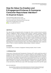 Jebarajakirthy, Charles, Saha, Victor, Goyal, Praveen and Mani, Venkatesh (2022) How do value co-creation and e-engagement enhance e-commerce consumer repurchase intention?: An empirical analysis. Journal of Global Information Management, 30 (5). pp. 1-23. ISSN 10627375