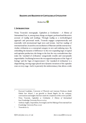 Sen, Rohini (2021) Reading and readings of capitalism as civilisation. European Journal of Legal Studies, 13 (1). pp. 117-136. ISSN 19732937