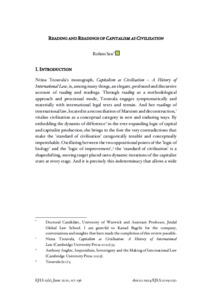 Ntina Tzouvala's monograph, Capitalism as Civilisation – A History of International Law, is, among many things, an elegant, profound and discursive account of reading and readings. Through reading as a methodological approach and processual mode, Tzouvala engages symptomatically and materially with international legal texts and terrain. And her readings of international law, located in a reconciliation of Marxism and deconstruction, vitalise civilisation as a conceptual category in new and enduring ways. By embedding the dynamic of difference in the ever-expanding logic of capital and capitalist production, she brings to the fore the very contradictions that make the 'standard of civilisation' categorically tenable and conceptually imperishable. Oscillating between the two oppositional points of the 'logic of biology' and the 'logic of improvement', the 'standard of civilisation' is a shapeshifting, moving target placed onto dynamic iterations of the capitalist state at every stage.