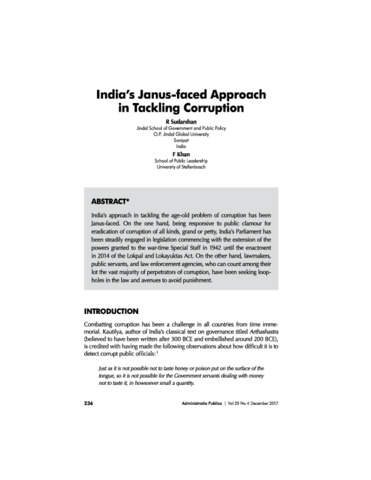 Sudarshan, Ramaswamy and Khan, Firoz (2017) India's Janus faced approach in tackling corruption. Administratia Publica, 24 (4). pp. 236-253. ISSN 1015-4833