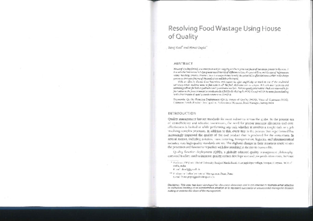 Resolving Food Wastage Using House of Quality 2017.pdf - Published Version