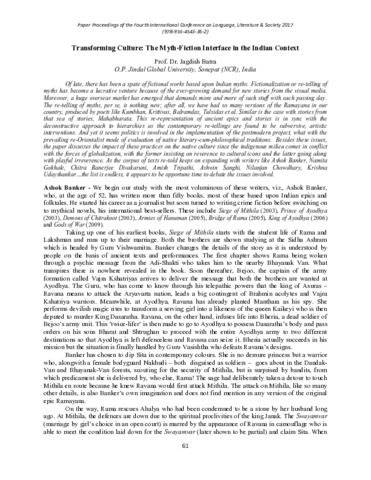 Batra, Jagdish (2017) Transforming culture: myth-fiction interface in the Indian context. In: Fourth International Conference on Language, Literature & Society 2017, 16-17 Jan 2017, Sri Lanka.