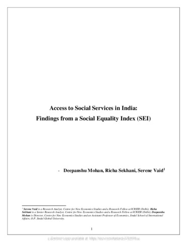 Mohan, Deepanshu, Sekhani, Richa and Vaid, Serene (2018) Access to social services in India: Findings from a social equality index (SEI). [Preprint]