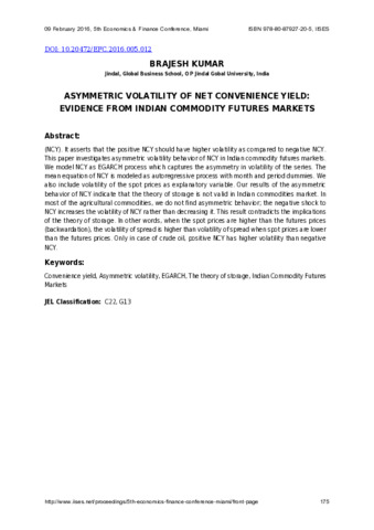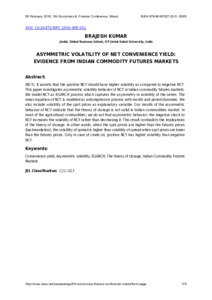 Kumar, Brajesh (2016) Asymmetric volatility of net convenience yield: Evidence from Indian commodity futures markets. In: Proceedings of 5th Economics and Finance Conference, February 09, 2016, International Institute of Social and Economic Sciences, Miami.