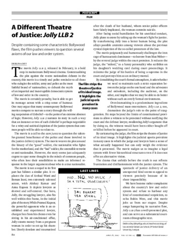 | Uncontrolled Keywords: | Bollywood Movies Review | Legal Satire | Hindi Movie | Justice Delivery System |
