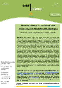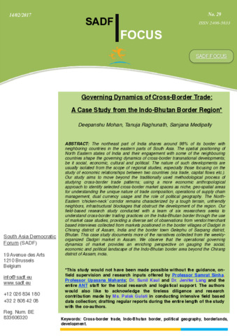 Mohan, Deepanshu, Raghunath, Tanuja and Medipally, Sanjana (2017) Governing dynamics of cross-border trade: a case study from the Indo-Bhutan border region. Project Report. South Asia Democratic Forum, Brussels.