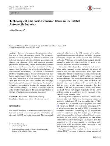 Bharadwaj, Ashish (2015) Technological and socio-economic issues in the global automobile industry. Transportation in Developing Economies, 1. pp. 33-39. ISSN 2199-9295