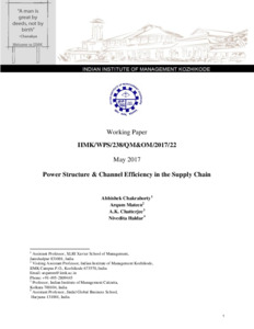 Chakraborty, Abhishek, Mateen, Arqum, Chatterjee, A.K. and Haldar, Nivedita (2017) Power structure & channel efficiency in the supply chain. [Preprint]