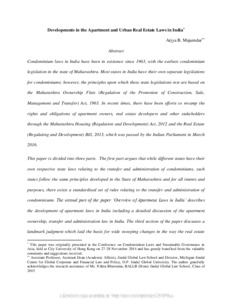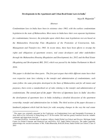 Majumdar, Arjya B. (2016) Developments in the apartment and urban real estate laws in India. [Preprint]