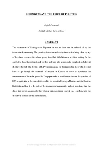 Parwani, Kajal (2017) Rohingyas and the price of Inaction. [Preprint] (Submitted)