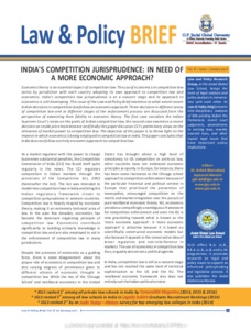 This issue of the Law and Policy Brief examines to what extent recent Indian decisions in competition law follow an economic approach. Three decisions in different areas of competition law and at different stages of the enforcement process are discussed from the perspective of examining their fidelity to economic theory. The first case considers the Indian Supreme Court’s views on the goals of Indian competition law, the second case examines a recent decision on resale price maintenance and finally this paper discusses CCI’s preliminary views on the relevance of market power to competition law. The objective of this paper is to throw light on the manner in which economics is being employed in competition law in India. This paper concludes that India does not follow a strictly economic approach to competition law.
