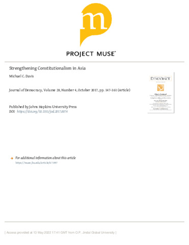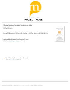 Davis, Michael C. (2017) Strengthening constitutionalism in Asia. Journal of Democracy, 28 (4). pp. 147-161. ISSN 1086-3214