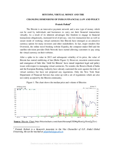 Pathak, Prateek (2014) Bitcoins, virtual money and the changing dimensions of Indian financial law and policy. [Preprint]