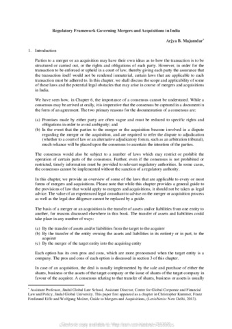 Majumdar, Arjya B. (2013) Regulatory framework governing mergers and acquisitions in India. In: Mergers and acquisitions: a comprehensive step-by-step approach. 1 ed. Lexis Nexis, New Delhi. ISBN 9788180388910