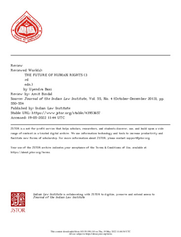 Bindal, Amit (2013) Reviewed Work: THE FUTURE OF HUMAN RIGHTS (3 rd edn.) by Upendra Baxi. [Book Reviews]