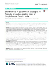 Ranjan, Alok, Dixit, Priyanka, Mukhopadhyay, Indranil and Thiagarajan, Sundararaman (2018) Effectiveness of government strategies for financial protection against costs of hospitalization care in India. BMC Public Health, 18 (1): 501. pp. 1-12. ISSN 14712458