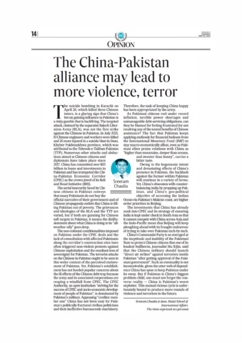 Chaulia, Sreeram (2022) The China-Pakistan alliance may lead to more violence, terror. The Hindustan Times.