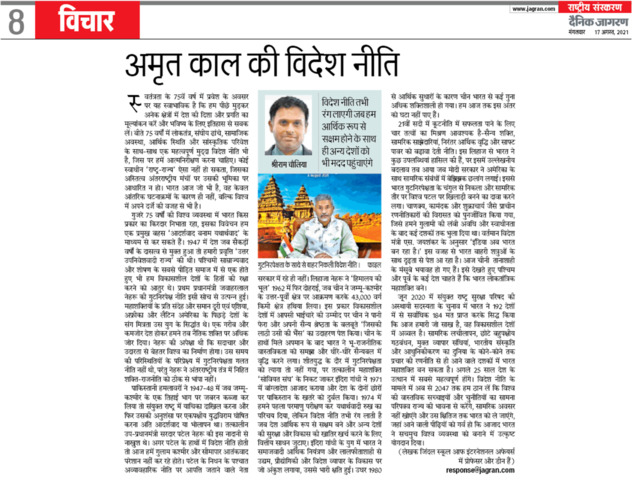 Chaulia, Sreeram (2021) Foreign Policy of Amrit Kaal: Foreign policy will bring color only when we are financially capable and help other countries. Dainik Jagran.
