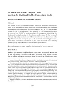The ‘tampon tax’ is a consumption based tax, imposed on products of menstrual hy-giene, which has come to the centre of attention worldwide as feminist activists keep protesting against its imposition. This article suggests that the VAT directive itself violates the charter of fundamental rights of the EU, as it obliges the member States to impose at least 5% VAT on sanitary products, the consequence of that being that the domestic law implementing the directive necessarily violates the charter as well. Although Cyprus imposes the lowest VAT rate possible, the level of awareness in the Republic as well as the cover of the topic by the local media is surprisingly low com-pared to the international evolutions in the field, while its domestic law is violating gender equality, despite the correct implementation of the directive
