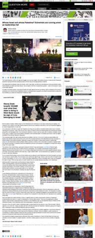 Chaulia, Sreeram (2021) Whose Israel and whose Palestine? Extremist are running amok as leadership fail. Russia Today.