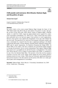Gupta, Uttaran Das (2021) Chilli powder and resistance: Mirch Masala, Shaheen Bagh, and the politics of space. Jindal Global Law Review, 12 (1). pp. 157-169. ISSN 09752498