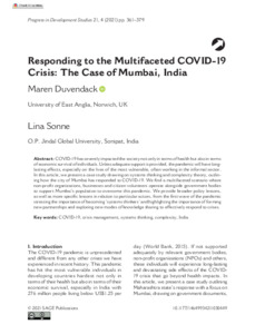 Duvendack, Maren and Sonne, Lina (2021) Responding to the multifaceted COVID-19 crisis: The case of Mumbai, India. Progress in Development Studies, 21 (4). pp. 361-379. ISSN 14649934