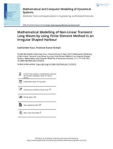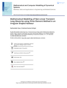 Kaur, Sukhwinder, Kumar, Prashant and -, Rajni (2021) Mathematical modelling of non-linear transient long waves by using finite element method in an irregular shaped harbour. Mathematical and Computer Modelling of Dynamical Systems, 27 (1). pp. 411-428. ISSN 13873954