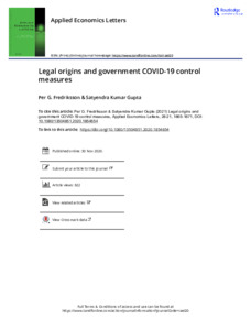 Fredriksson, Per G and Gupta, Satyendra Kumar (2021) Legal origins and government COVID-19 control measures. Applied Economics Letters, 28 (21). pp. 1865-1871. ISSN 13504851